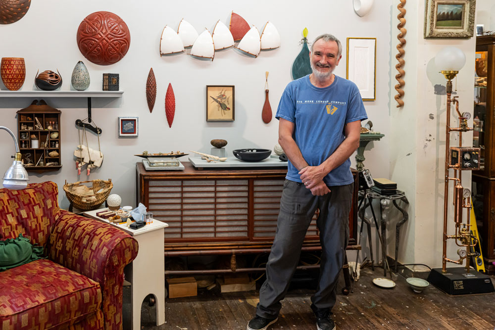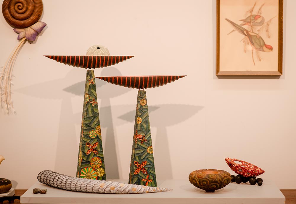 Melissa Engler and Graeme Priddle have collaborated on sculptural wood art in their Grovewood Village studio since 2015. This husband-and-wife team maintains an active exhibition schedule while also teaching woodturning workshops around the world.