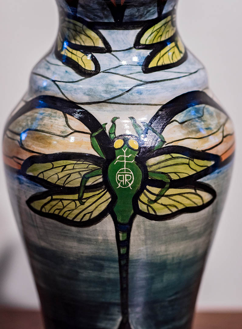 • Hand-painted ceramic dragonfly vase
