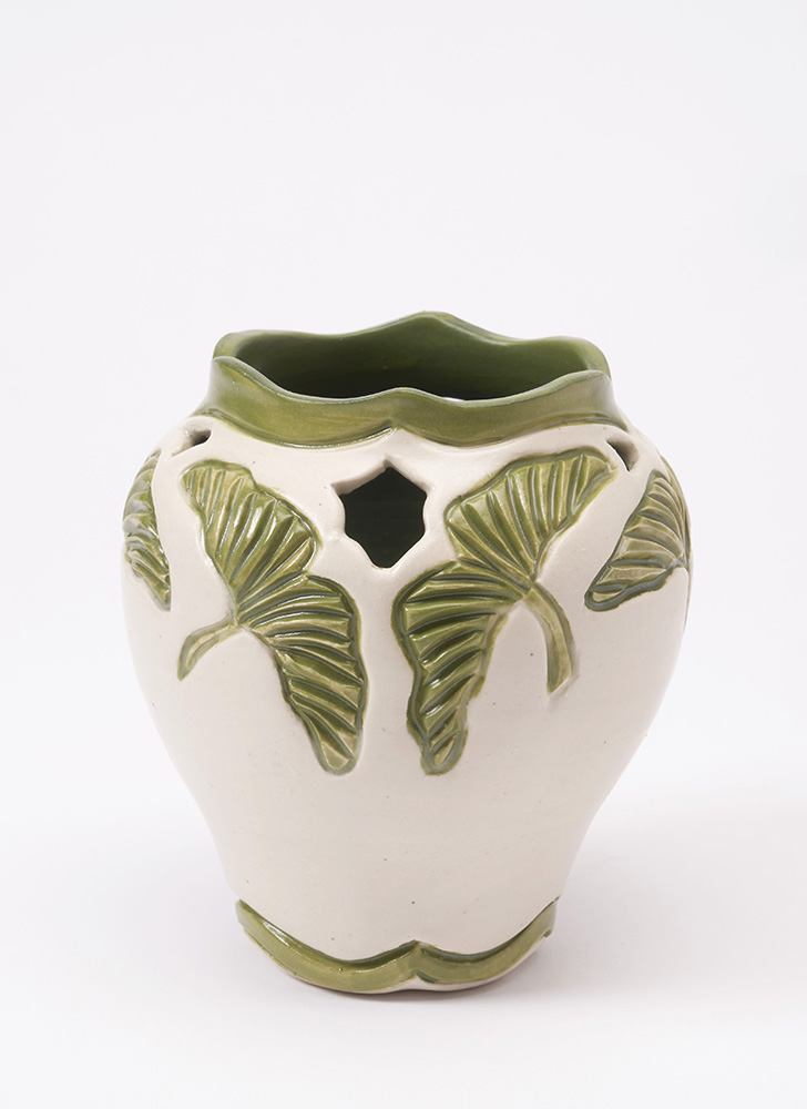 Ginkgo Green & White Vase